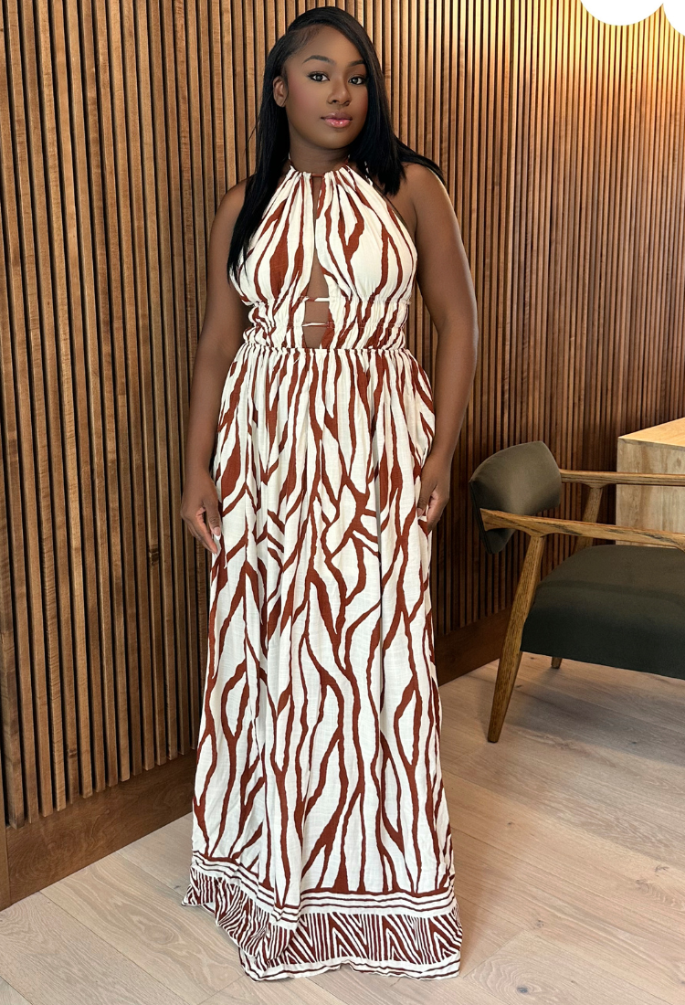 ALL EYES ON HER MAXI DRESS (BROWN)