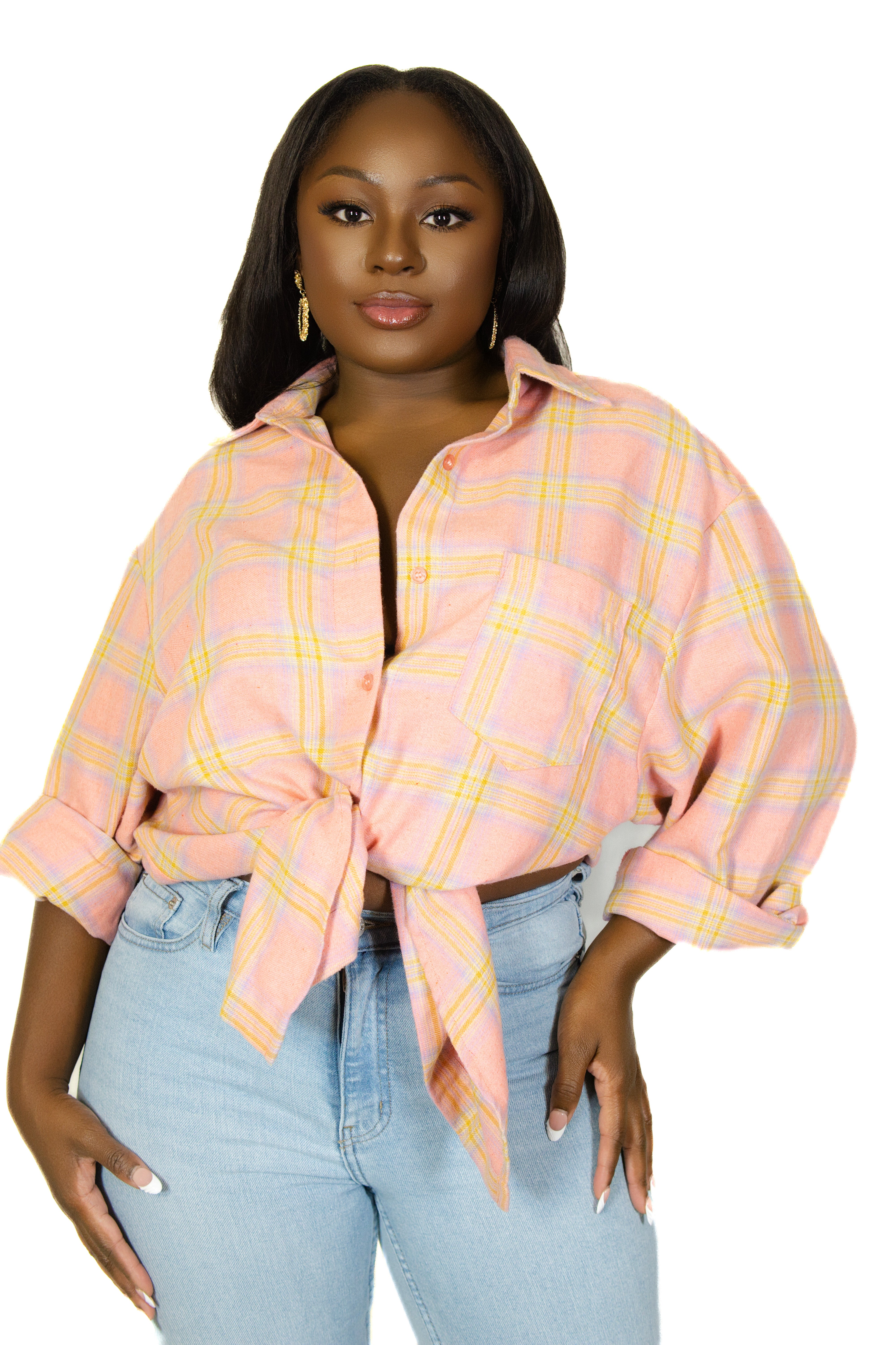 The Aspen Pink Flannel Over Size Plaid Jacket adds a pop of color and effortless style to your wardrobe. Featuring a soft pastel plaid pattern, a loose, relaxed fit, and a flirty tie at the waist, it’s perfect for pairing with your favorite denim for a laid-back yet chic look. Dress it up or down for a versatile, easy-to-wear statement piece. Ideal for layering or wearing solo as the season transitions.